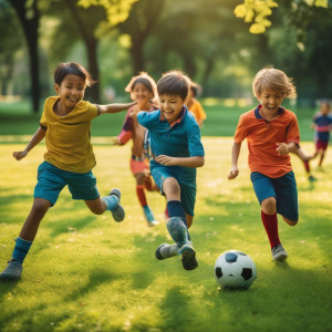 Los niños tienen la oportunidad de dividirse en equipos y participar en un partido lleno de acción y